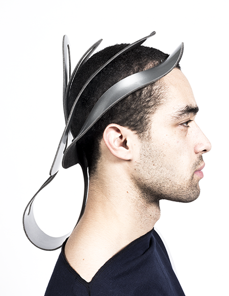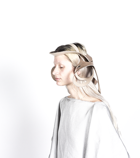 'Reframe' is an accessory collection of tensional soft 2D shapes: when you wear these shapes, they follow your body and create an architectural structure on your clothing.